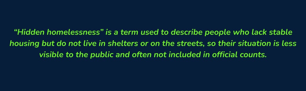 According to the U.S. Interagency Council on Homelessness, many young people who are homeless live in what’s called “hidden homelessness.” This includes “couch-surfing,” “doubling up” with others, or staying in motels, cars, or other temporary settings. Because these situations don’t fit the public image of homelessness, they often go unnoticed and uncounted.