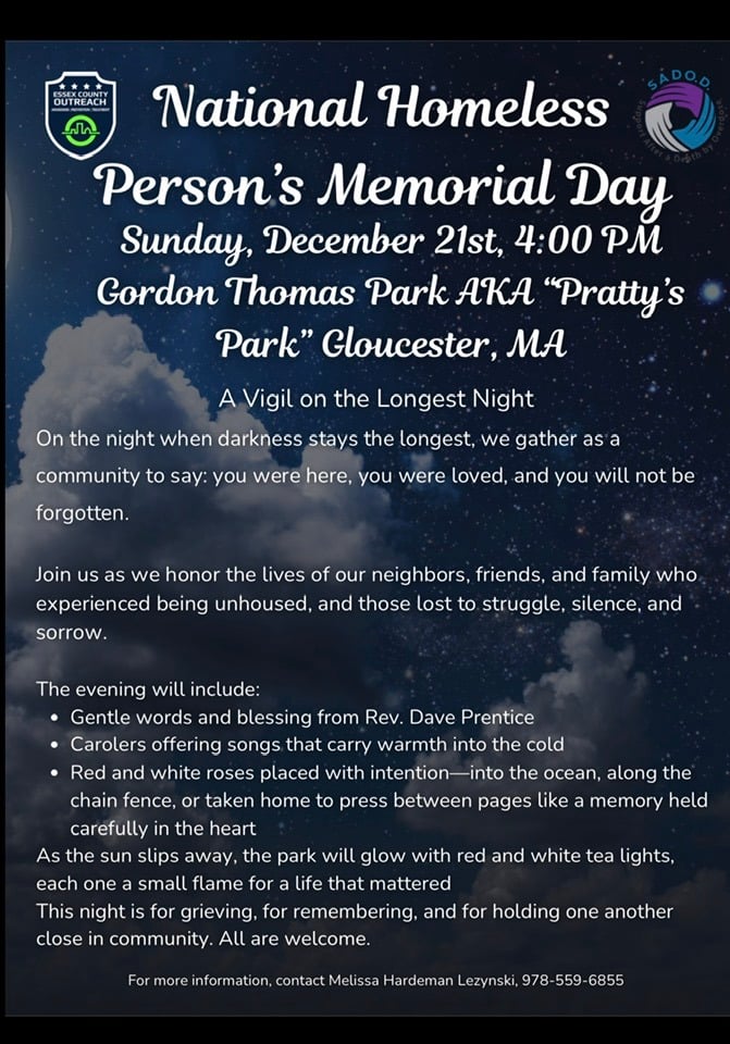 Please join ECO and SADOD on December 21st in Gloucester for National Homeless Persons’ Memorial Day. Observed on the winter solstice, the longest night of the year, this gathering honors...